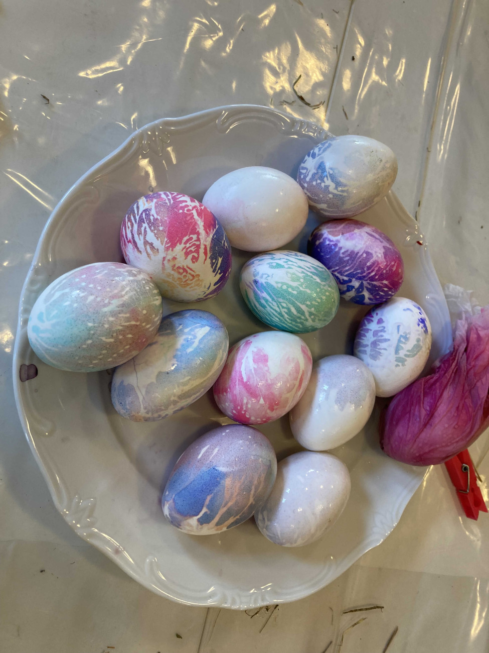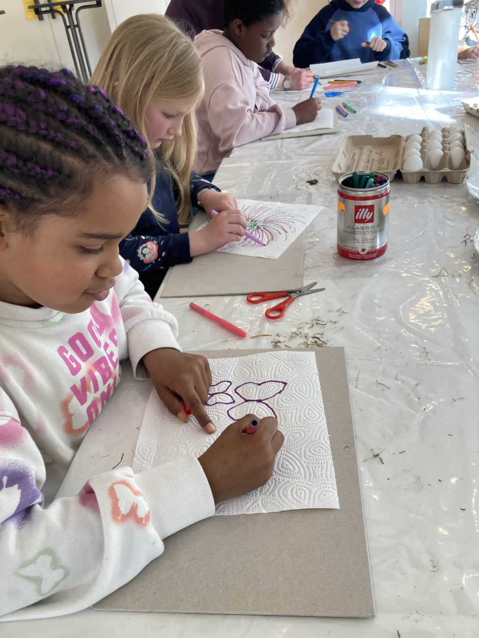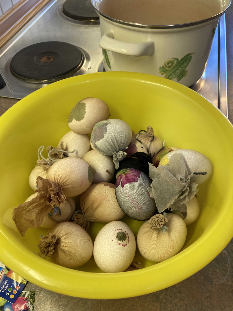 Aus Heu und Holzleim entstanden schöne Osternester, die mit selbst gefärbten Eiern bestückt wurden. Die Kinder konnten sich in zwei verschiedenen Färbetechniken ausprobieren. Nach so viel Kreativität würde sich an einem reich gedeckten Ostertisch mit herzhaften Osterhasen und Osterzopf gestärkt. Zum Abschluss ging es in die Kirche, wo jedes Kind eine kleine süße Überraschung suchen durfte - es war ein gelungener Start in die Osterferien.