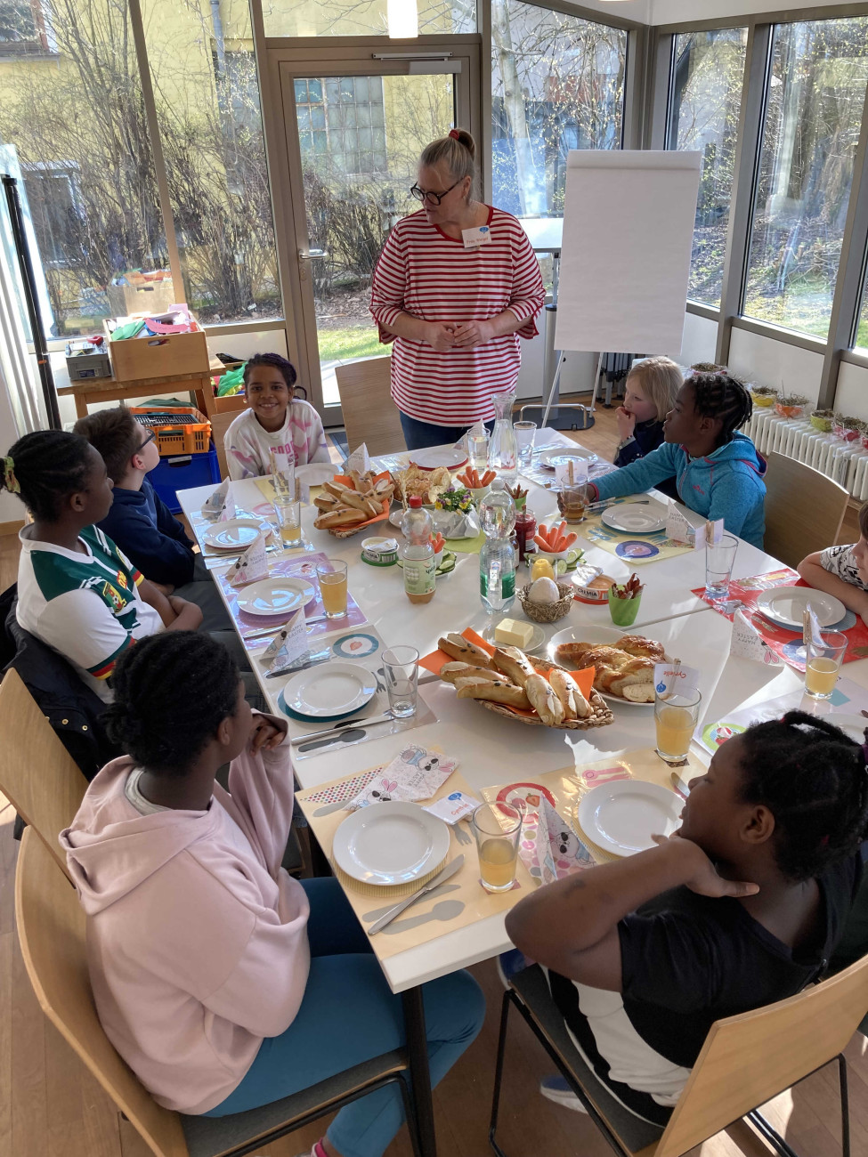 Jedes Kind hat bei jedem Treff die Gelegenheit seinen Essplatz einzudecken. Wo kommt das Besteck hin, wo das Glas und die Serviette? Ganz einfach ist das beim Ruckizucki-Treff, denn jedes Kind hat sein eigenes Tischset gebastelt und darauf ist die Anordnung des Gedecks abgebildet. Die Tischmitte wird immer saisonal und mit den gebastelten Werken des Tages geschmückt, dann wird ein Tischspruch aufgesagt und mit gutem Appetit geht’s ans Verspeisen der selbstzubereiteten Gerichte.