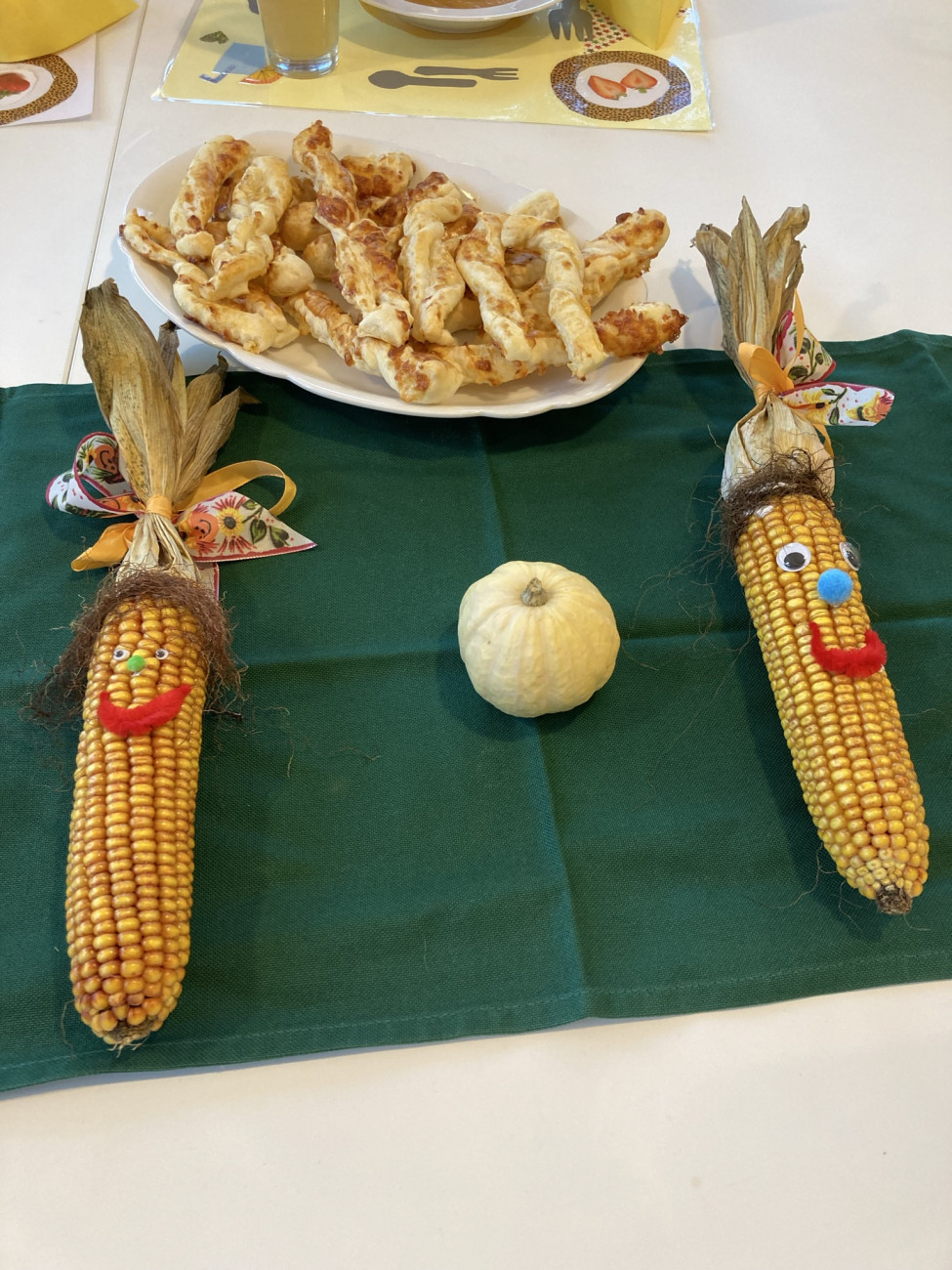 Gebastelt wurde mit Maiskolben. Es sind lustige, herbstliche Gestalten entstanden!